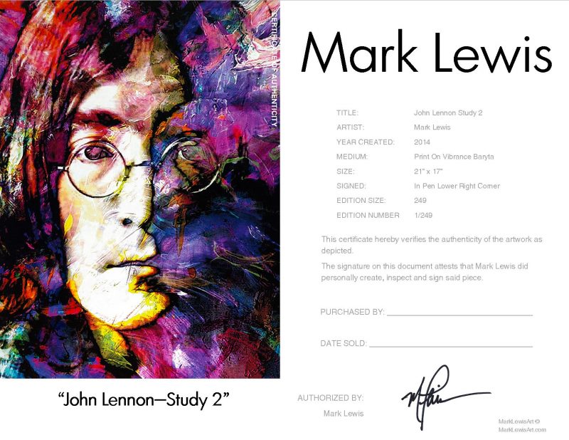 John Lennon Study 2 Certificate