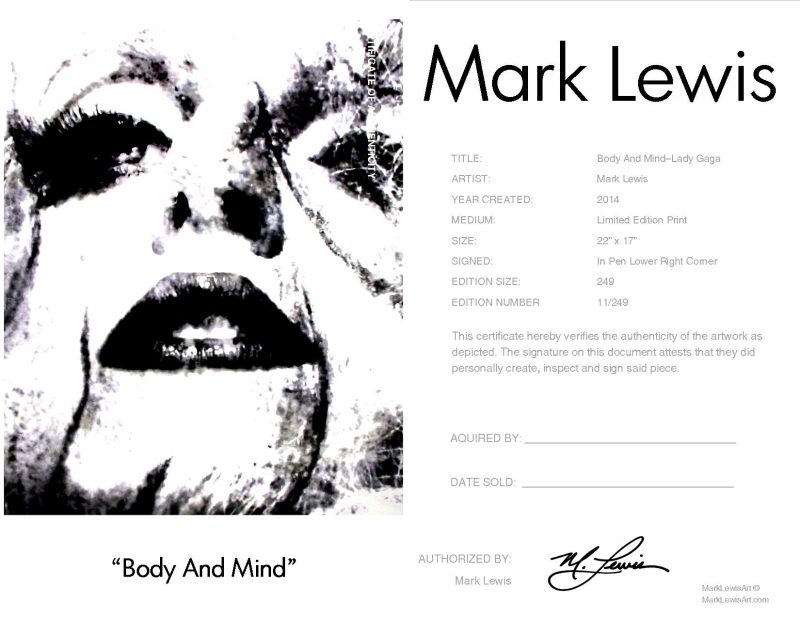 Lady Gaga “Body And Mind” lep certificate