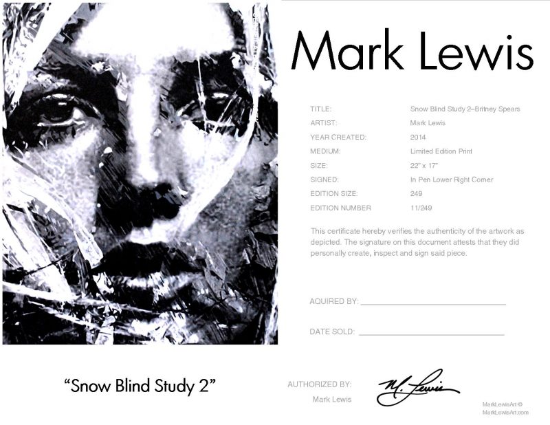 Britney Spears “Snow Blind Study 2” lep certificate