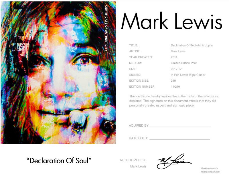Janis Joplin “Declaration Of Soul” lep certificate
