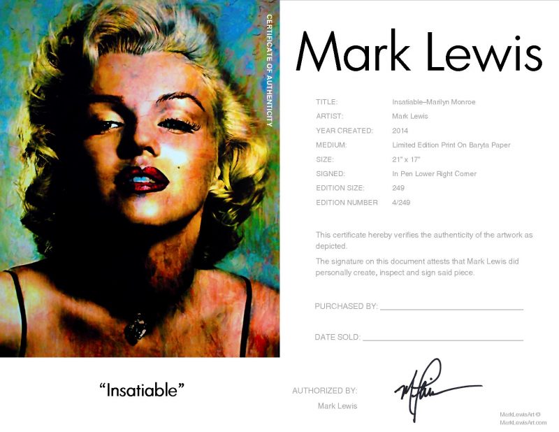 Marilyn Monroe Print “Insatiable” by Mark Lewis Marilyn Monroe Print “Insatiable” by Mark Lewis Continue reading →
