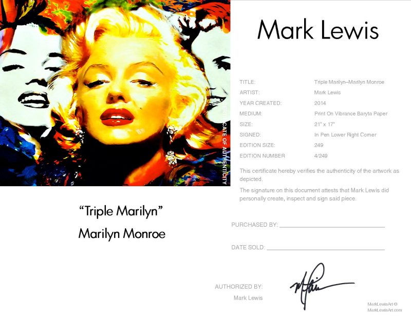 Marilyn Monroe Triple Marilyn LEP Certificate
