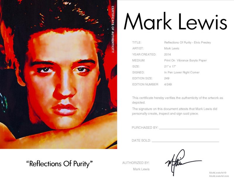 Elvis Presley Reflections Of Purity Certificate